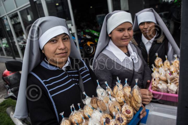 CIUDAD DE MÉXICO, 19JUNIO2018.- Un grupo de monjas venden galletas en un semáforo de la capital mexiquense. FOTO: TERCERO DÍAZ /CUARTOSCURO.COM