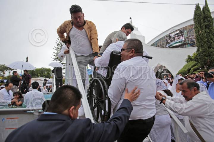 GUADALAJARA, JALISCO, 13AGOSTO2018.- Esta mañana cientos de fieles de la Iglesia de La Luz del Mundo fueron bautizados en la sede del Bethel, lugar donde año con año se llevan a cabo estas ceremonias religiosas, esto en el marco de la edición 81 de la "Santa Convocación 2018". FOTO: FERNANDO CARRANZA GARCIA / CUARTOSCURO.COM