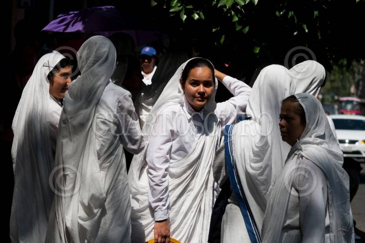 CIUDAD DE MÉXICO, 18ABRIL2019.- Religiosas dan una visión peculiar del paisaje en una de las calles del Centro Histórico. FOTO: GALO CAÑAS /CUARTOSCURO.COM