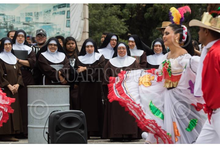 CIUDAD DE MÉXICO, 02JUNIO2019.- Religiosas miran divertidas una presentación de danza regional en el atrio de la Basílica de Guadalupe. FOTO: MOISÉS PABLO /CUARTOSCURO.COM