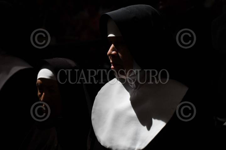 CIUDAD DE MÉXICO, 18JULIO2025.- Dos monjas de la iglesia católica durante la misa capitular a la reliquia del Beato Sebastián de Aparicio que se expondrá en la Catedral Metropolitana de la Ciudad de México para la veneración de los fieles. La reliquia es una cuerda de su hábito franciscano, símbolo de su pertenencia a la Orden de Frailes Menores, a la cual se unió a los 72 años de edad. FOTO: MARIO JASSO/CUARTOSCURO.COM