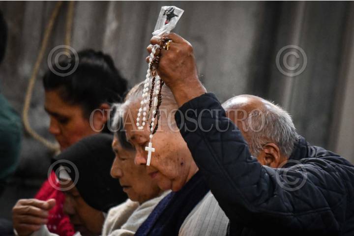 CIUDAD DE MÉXICO, 18JULIO2025.- Fieles devotos católicos durante la misa capitular a la reliquia del Beato Sebastián de Aparicio que se expondrá en la Catedral Metropolitana de la Ciudad de México para su veneración. La reliquia es una cuerda de su hábito franciscano, símbolo de su pertenencia a la Orden de Frailes Menores, a la cual se unió a los 72 años de edad. FOTO: MARIO JASSO/CUARTOSCURO.COM