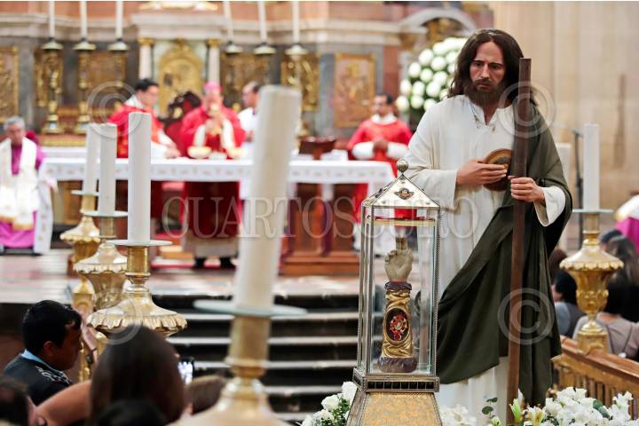 PUEBLA, PUEBLA, 27AGOSTO2024.- Poblanos visitan las reliquias de San Judas Tadeo en la catedral metropolitana, las cuales permanecerán en la capital hasta el 29 de agosto. FOTO: MIREYA NOVO/ CUARTOSCURO.COM