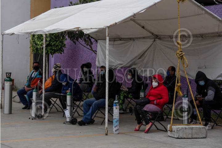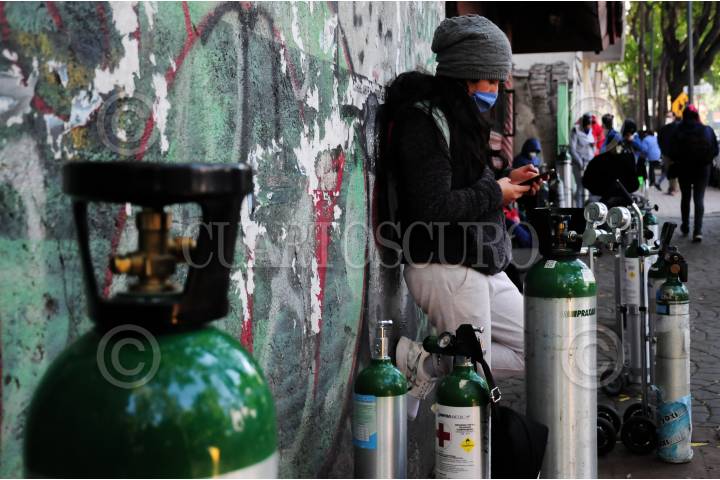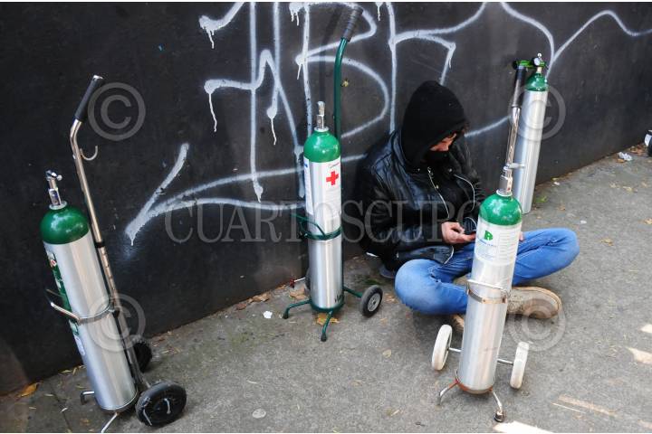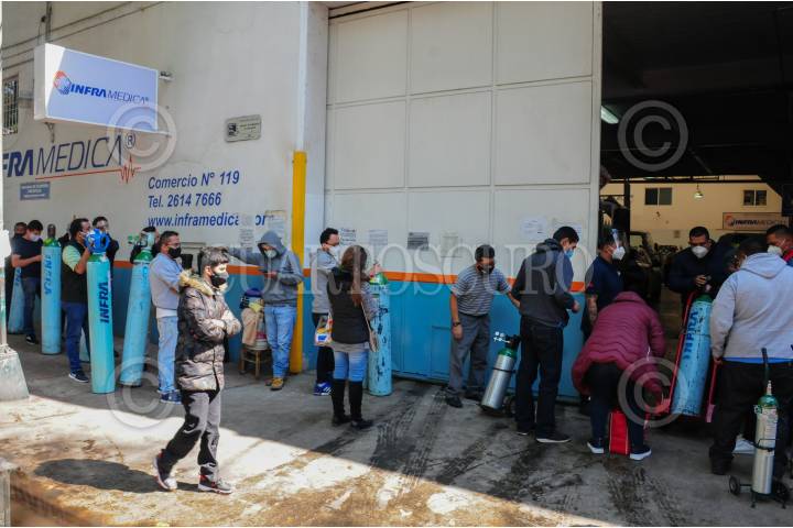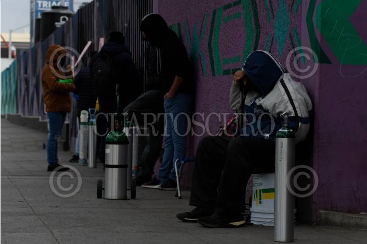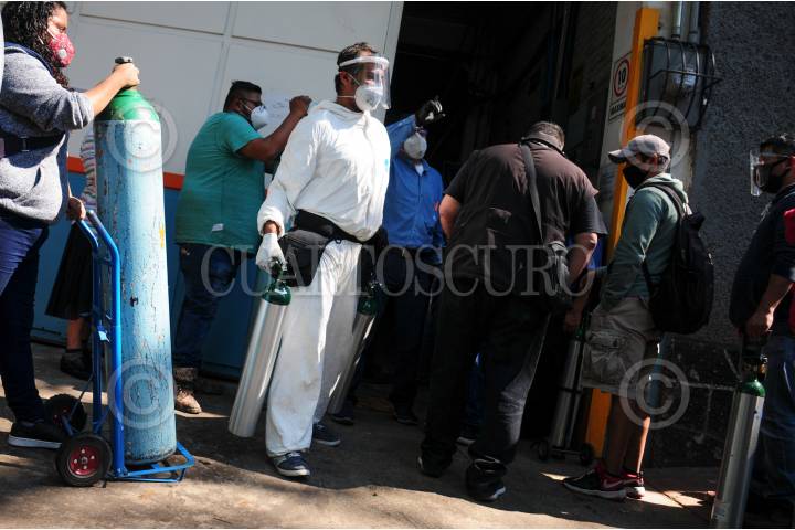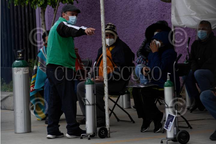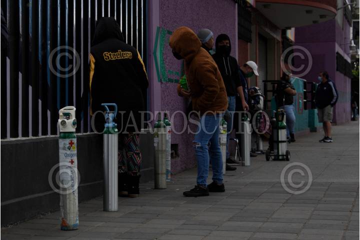 Las filas para el rellenado de tanques de oxígeno se comienzan a formar desde la madrugada y las horas de espera son largas.