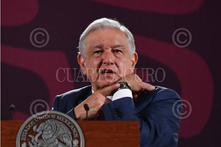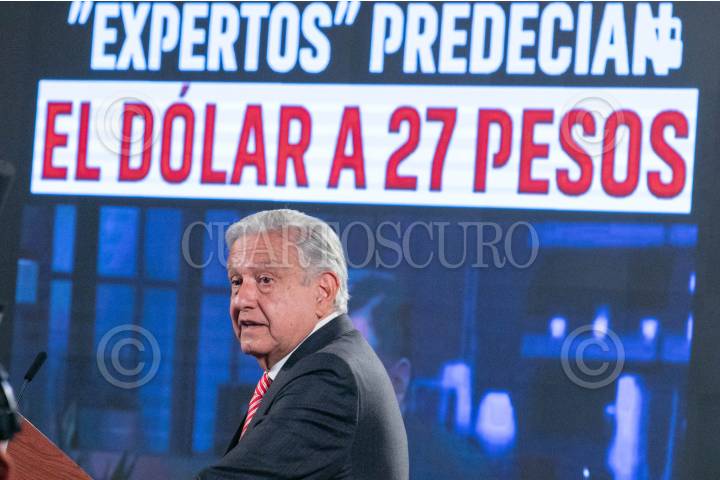 CIUDAD DE MÉXICO, 09SEPTIEMBRE2024.- Andrés Manuel López Obrador, Presidente de México, mostró un vídeo titulado "Expertos predecían el dólar a 27 pesos", en el que vaticinaba una devaluación del peso al inicio de su sexenio, durante la mañanera. FOTO: MOISÉS PABLO/CUARTOSCURO.COM