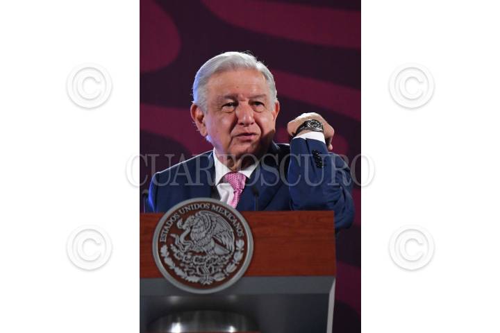 CIUDAD DE MÉXICO, 06SEPTIEMBRE2024.- Andrés Manuel López Obrador, presidente de México, durante su intervención en la conferencia matutina realizada en Palacio Nacional, muestra su reloj de marca "Momentum" para desmentir su presunto costo de más de 100 mil pesos. Además adelantó que rifará dicho reloj entre los reporteros que asistan a su última mañanera. FOTO: MARIO JASSO/CUARTOSCURO.COM