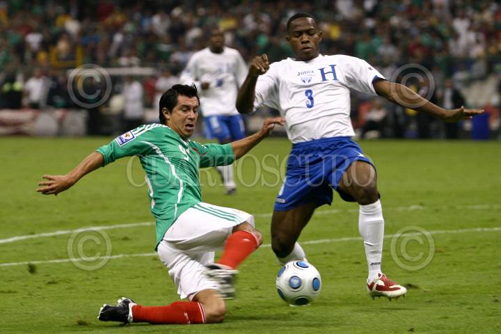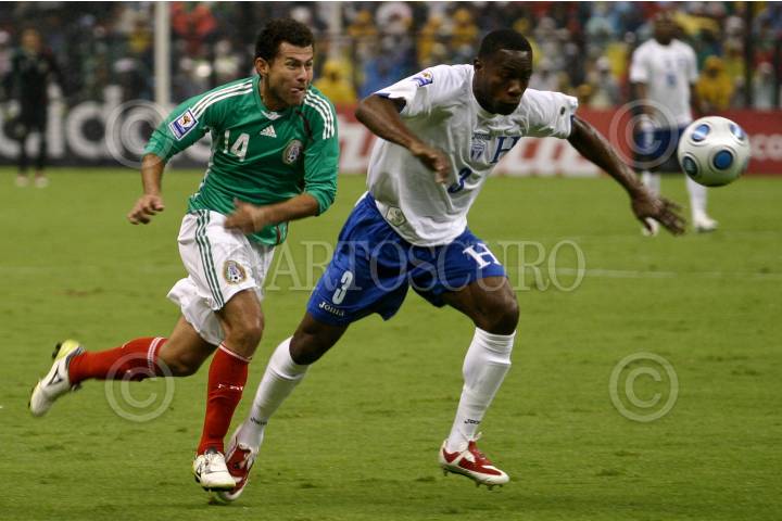 MÉXICO, D.F., 09SEPTIEMBRE2009.- Juan Carlos Cacho de la Selección Nacional de México buscar rematar durante el partido en contra de la Selección Nacional de Honduras; con gol de penal de Cuauhtémoc Blanco, la Selección Mexicana gano el partido de la ronda eliminatoria al mundial de Sudáfrica 2010, disputado en el estadio Azteca. FOTO: RODOLFO ANGULO/CUARTOSCURO.COM