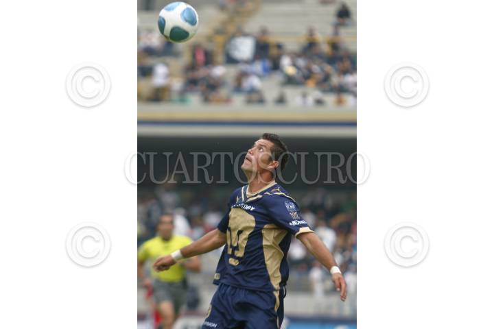 MÉXICO, D.F., 31ENERO2010.- Dante Lopez de los Pumas de la UNAM busca rematar el balón durante el encuentro en contra de los diablos del Toluca. Partido sin goles de la jornada 3 del torneo Bicentenario que se disputo en el Estadio Olímpico Universitario. FOTO: RODOLFO ANGULO/CUARTOSCURO.COM