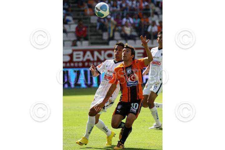 PACHUCA, PACHUCA, 01MAYO2010.- Edgar Benitez de los Tuzos del Pachuca busca rematar el balón durante el encuentro en contra de los Rayados del Monterrey en el partido de ida de cuartos de final del Torneo Bicentenario que se realizo en esta ciudad. Los Tuzos ganaron 1 gol por 0 a los Rayados. FOTO: RODOLFO ANGULO/CUARTOSCURO.COM