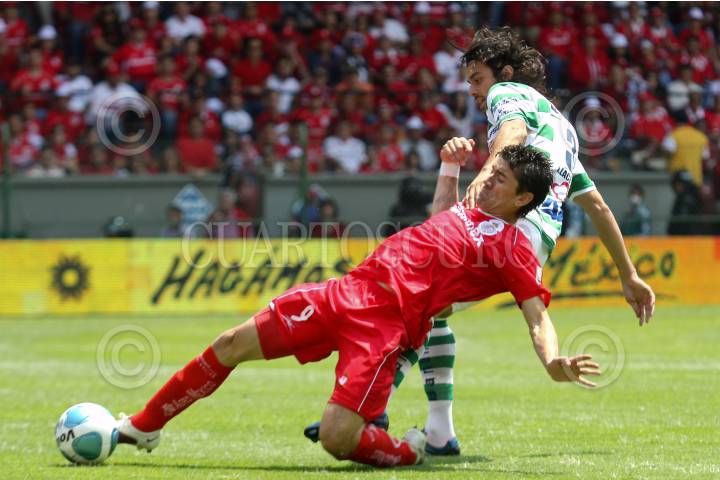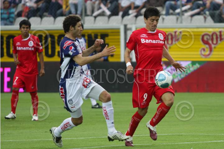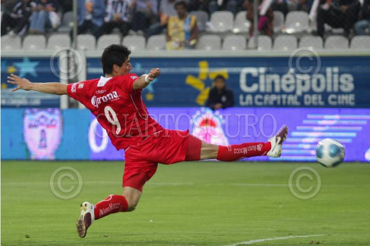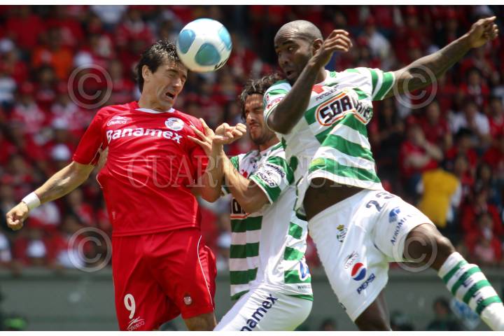 TOLUCA, ESTADO DE MÉXICO, 23MAYO2010.- Hector Mancilla de los Diablos del Toluca intentan rematar durante el encuentro en contra de los Guerreros del Santos Laguna en el partido de la gran final del torneo Bicentenario que se realizo en el Estadio Nemesio Diez, ganando la gran final en serie de penales los Diablos 4 goles a 3. FOTO: RODOLFO ANGULO/CUARTOSCURO.COM