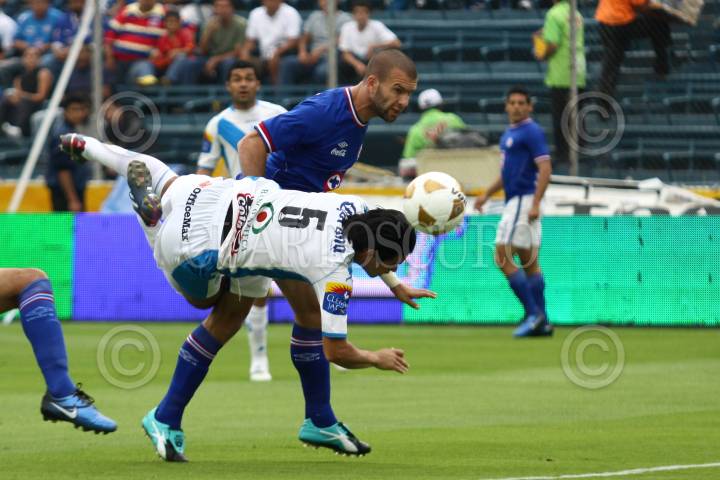 MÉXICO, D.F., 14AGOSTO2010.- Emanuel Villa de la Maquina Celeste del Cruz Azul intenta rematar durante el encuentro en contra de los Tuzos del Pachuca en el partido de la jornada 4 del torneo Apertura 2010 que se realizo en el estadio Azul ganando la Maquina Celeste 4 goles por 1. FOTO: RODOLFO ANGULO/CUARTOSCURO.COM
