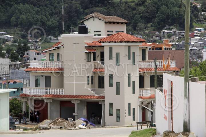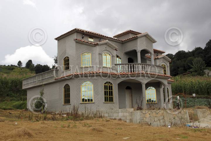 SAN JUAN CHAMULA, CHIAPAS, 12AGOSTO2014.- En el municipio indígena de San Juan Chamula, muchas de las remesas enviadas por los hombre del pueblo que migraron a los Estados Unidos las utilizaron para hacer sus casas estilo californiano, que por ahora no se ve en otros lugares de Chiapas. FOTO: ELIZABETH RUÍZ /CUARTOSCURO.COM
