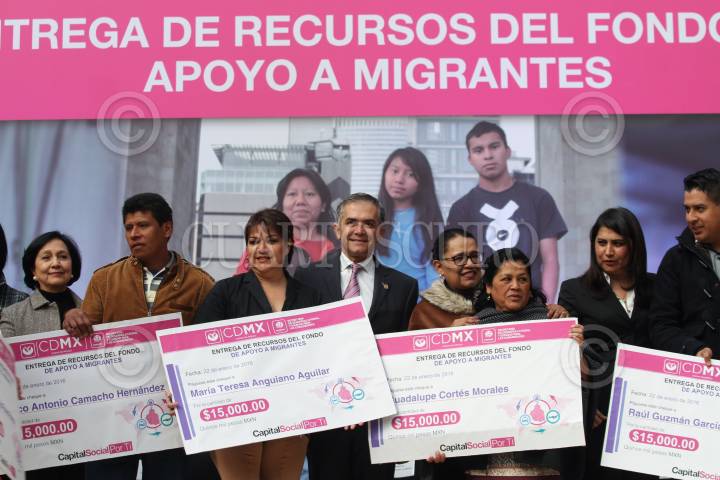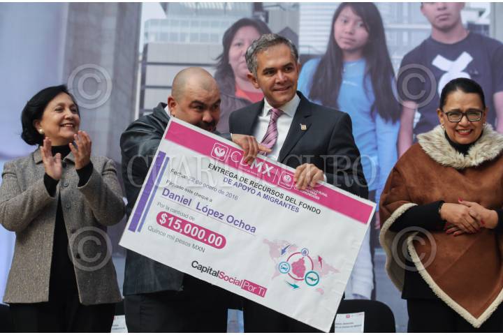 MÉXICO, D.F., 22ENERO2016.- Miguel Ángel Mancera, jefe de gobierno capitalino, entregó apoyos económicos a familiares de migrantes en Estados Unidos. Acompañado de Rosa Icela Rodríguez, secretaria de Desarrollo Rural y Equidad para las Comunidades en el Distrito Federal, y Patricia Mercado, secretaria de Trabajo, también mencionó que si alguno de los familiares inscritos a este programa de apoyo también podrán recibir atención médica y un trabajo digno si lo solicitan. FOTO: MARÍA JOSÉ MARTÍNEZ /CUARTOSCURO.COM