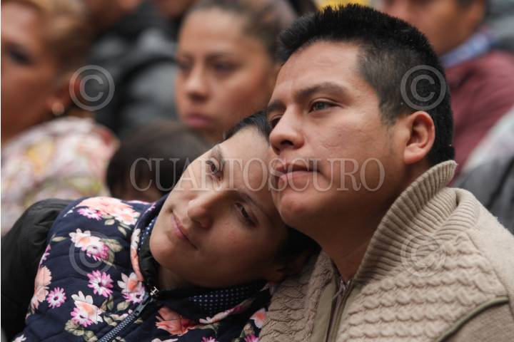ACAPULCO, GUERRERO, 04ENERO2013.- Decenas de paisanos que regresaron de los Estados Unidos llegaron mero a la celebración de que desde hace un siglo a principios de año, el poblado Los Huajes, municipio de Acapulco, y dos Arroyos celebran a la virgen de Genoveva con música de viento, bailables populares, tamales, quema del torito y castillo. En su honor de los que llegaron mataron una res para el festejo. En Los Huajes las familias preparan a los jóvenes desde pequeños para vivir como migrantes en los Estados Unidos. A 90 kilómetros del puerto, las viviendas en muchos casos aún son de adobe, madera y teja, sin agua y sin drenaje. Las remesas son el pilar de la economía. El presidente del club de migrantes de Dos Arroyos, Edilberto Ceballos Carbajal, estimó que actualmente hay unos 5 mil personas de pueblos de la denominada ruta del sol de la zona rural de Acapulco, diseminados en Estados Unidos, principalmente California, Phoenix, Nevada y Nueva York, quienes se desempeñan en puestos de mano de obra, pega de azulejos y ensamblados. Ceballos Carbajal confesó que "uno allá tiene que llorar y aguantarse, sus lagrimas y en el camino del paso para cruzar para el otro lado tienen que comerse el excremento de las vacas" que encuentran a su paso dijo. FOTO: BERNANDINO HERNÁNDEZ /CUARTOSCURO.COM