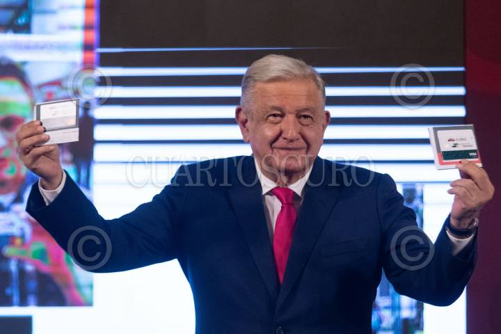 Andrés Manuel López Obrador, Presidente de México, durante la mañanera en la cual se abordo el tema del Tren Maya, AIFA, y la Tarjeta Financiera del Bienestar, está última servirá para que los paisanos hagan sus envíos de remesas.
