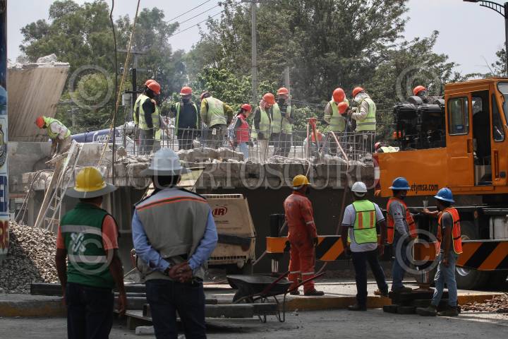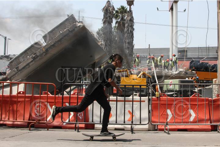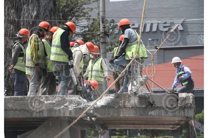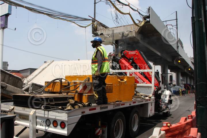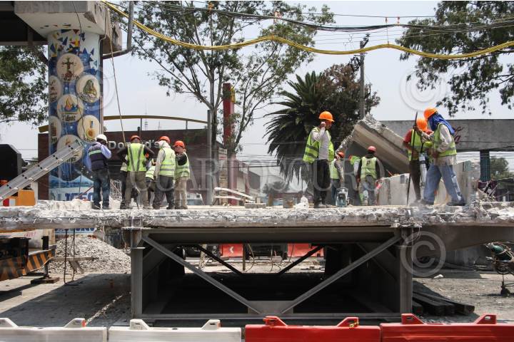 Trabajos de peritaje continúan en el lugar del derrumbe del puente de la Linea 12 del Metro.