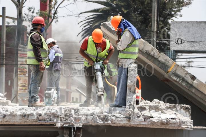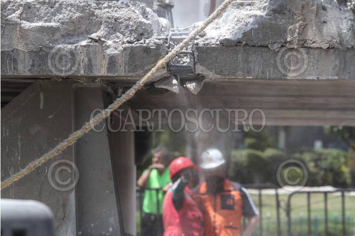 Continúan los trabajos de remoción escombros en la estación Olivos del la línea 12 del Metro.
