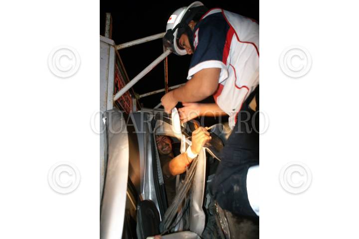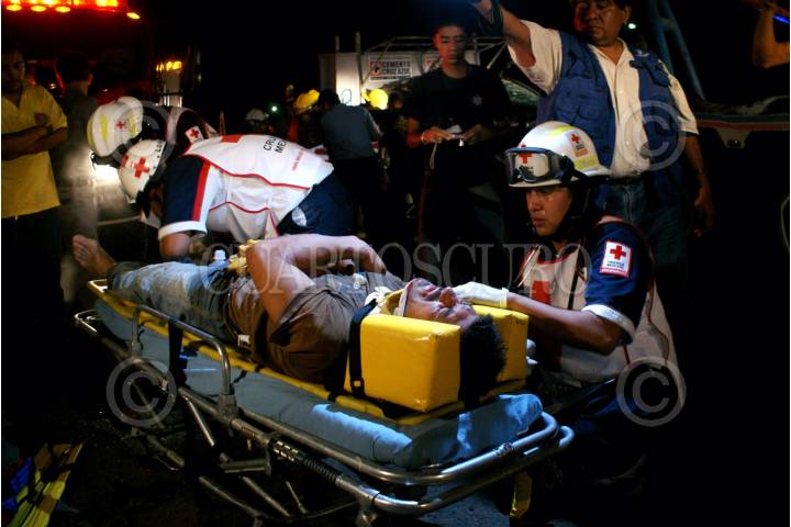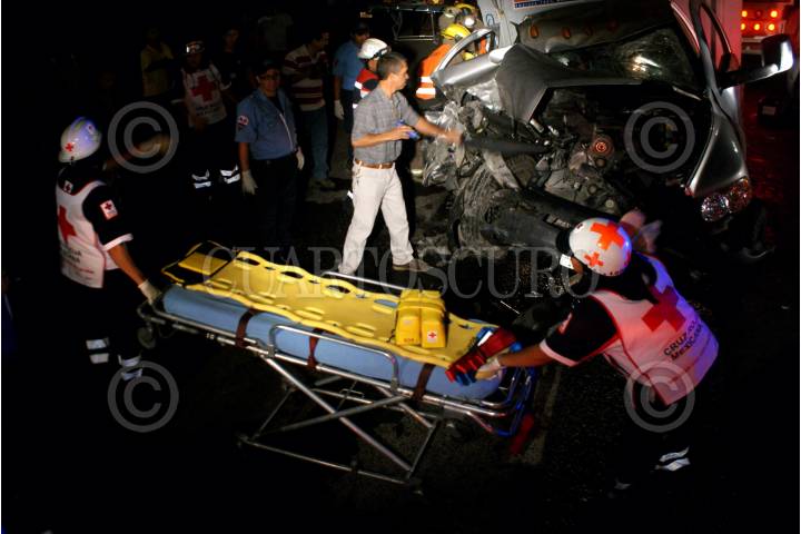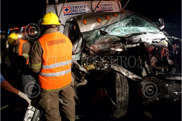 VERACRUZ, VERACRUZ, 15DICIEMBRE2009.- Hoy en la madrugada dos personas del sexo masculino permanecieron prensados por más de una hora y media dentro de la camioneta en que viajaban, después de impactarse con un trailer de doble remolque que permanecía estacionado en el acotamiento. Unidades de rescate, bomberos y cruz roja les brindaron auxilio y los rescataron. FOTO: FÉLIX MÁRQUEZ/CUARTOSCURO.COM