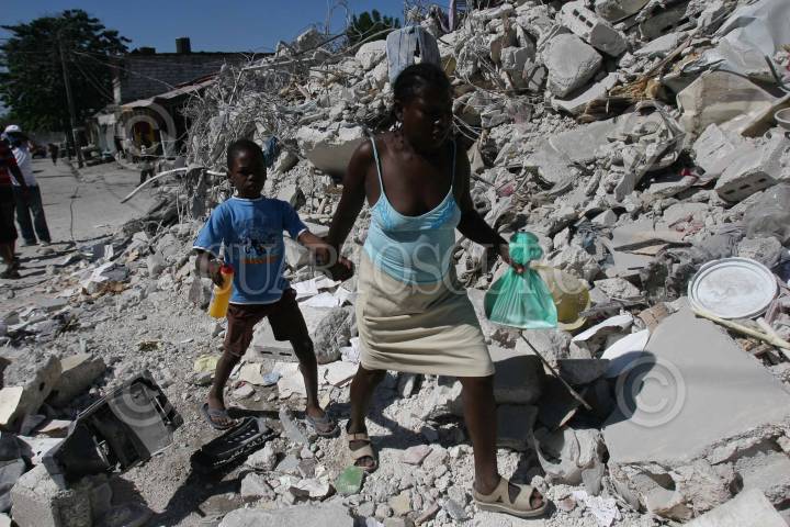 PUERTO PRÍNCIPE, HAITI, 29ENERO2010.- Personas caminan entre los escombros, los cuales comenzaron a ser removidos de la capital Puerto Príncipe. FOTO: ISAAC ESQUIVEL/CUARTOSCURO.COM