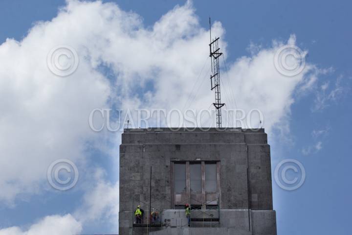 Continúan los trabajos de remozamiento de la columna del Ángel de la Independencia.