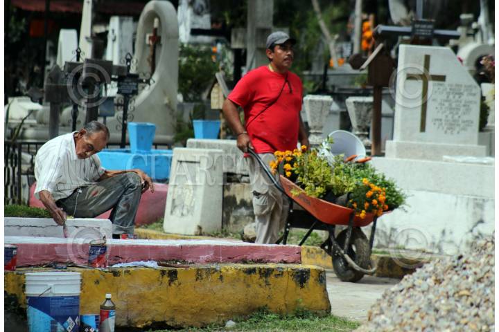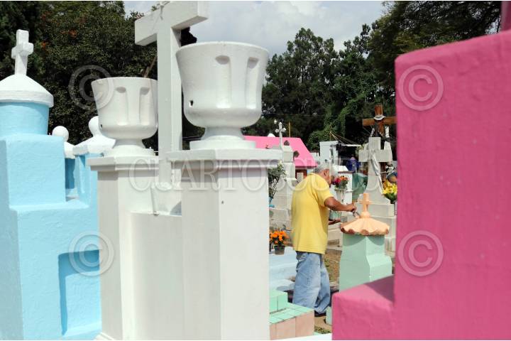 CUERNAVACA, MORELOS, 01NOVIEMBRE2018.- Un hombre pinta una tumba en el panteón de la comunidad indígena de Ocotepec al norte de la capital. FOTO: MARGARITO PÉREZ RETANA /CUARTOSCURO.COM