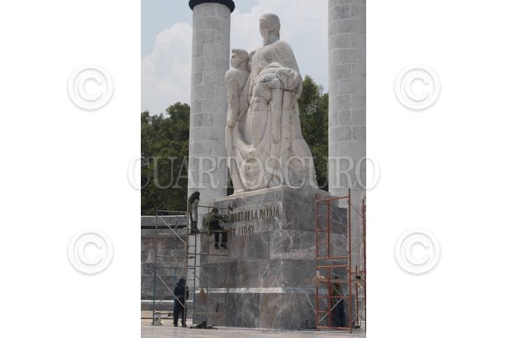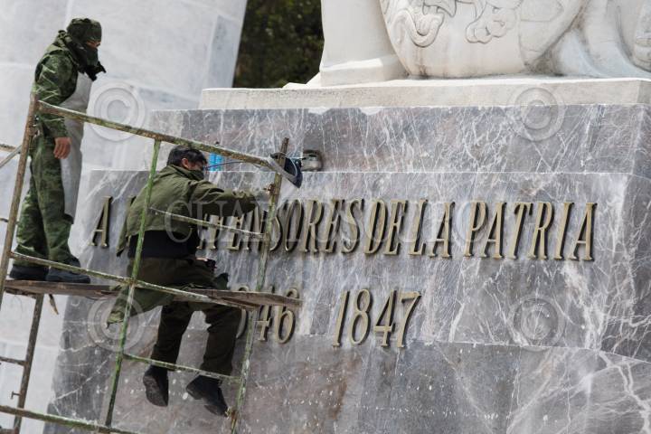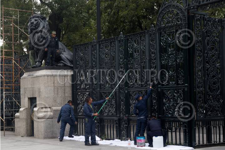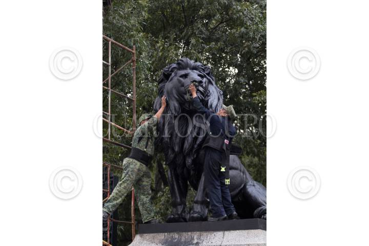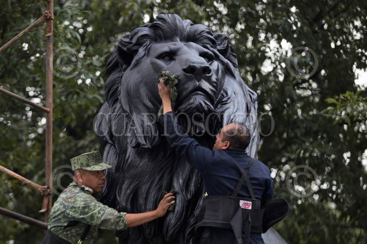 CIUDAD DE MÉXICO, 05SEPTIEMBRE2019.- Militares se encuentran en trabajos de remozamiento de la Puerta de los Leones de Chapultepec y el Altar a la Patria para que luzcan impecables en los festejos patrios. FOTO: MOISÉS PABLO /CUARTOSCURO.COM