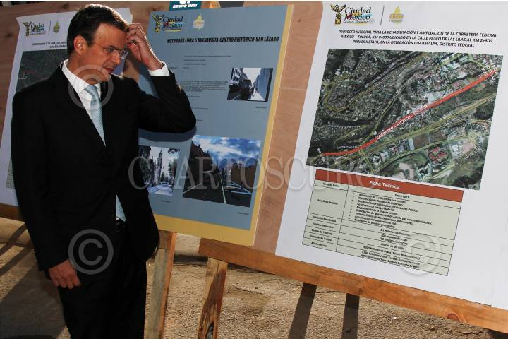 MEXICO, D.F., 05ENERO2011.- Marcelo Ebrard Casaubon, Jefe de Gobierno del Distrito Federal, dio el banderazo de salida del proyecto de rehabilitación y ampliación de la carretera federal México-Toluca en la delegación Cuajimalpa. FOTO: MISAEL VALTIERRA/CUARTOSCURO.COM