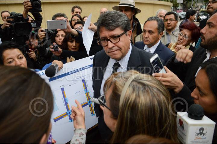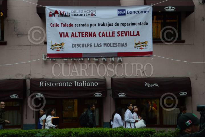 CIUDAD DE MÉXICO, 29FEBRERO2016.- Ricardo Monreal Ávila, jefe delegacional de Cuauhtémoc, dio el banderazo de inicio de los trabajos de rencarpetamiento de la calle Toledo, en la colonia Juárez, como parte de los acuerdos que la delegación hizo con grupo Bancomer tras la construcción de la mega torre de dicha institución, inaugurada el pasado 09 de febrero. Durante el acto, una residente de la calle Tokio solicitó a los empresarios que también arreglaran dicha calle al igual que exigió al jefe delegacional realizar un peritaje de las construcciones pues dicen que se encuentran inclinadas debido al mega proyecto. FOTO: GALO CAÑAS /CUARTOSCURO.COM