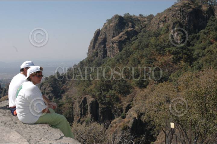 TEPOZTLAN, MORELOS 02FEBRERO2009.- En el Cerro del Tepozteco se encuentran vestigios de antiguas construcciones entre los cuales reinaba Tepoztécatol, Dios del Pulque y la Embriquez, pero este deidad estaba también relacionada con la fecundidad de las cosechas y era un lugar de peregrinaciones que llegaban de sitios muy distantes, para rendirle culto. FOTO: MARIO NULO/CUARTOSCURO.COM