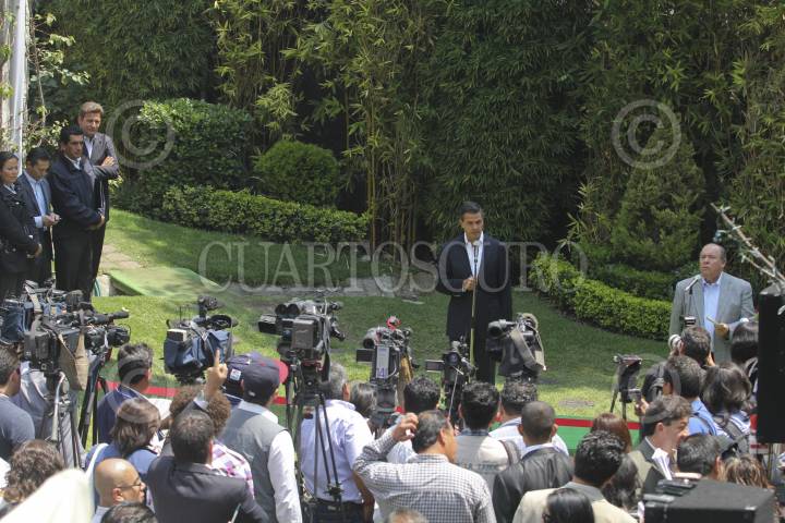 MÉXICO D.F., 05JUNIO2012.- Enrique Peña Nieto, candidato a la presidencia de la coalición “Compromiso por México” al termino de la firma del plan de Concertación Mexicana con exdirigentes nacionales y militantes de los partidos de la Revolución Democrática y Acción Nacional. FOTO: SAÚL LÓPEZ /CUARTOCURO.COM