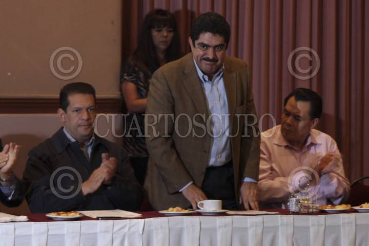 PUEBLA, PUE, 20MARZO2013.- Manuel Espino acompañado por René Arce, presentó en Puebla su propuesta para encabezar un partido político nuevo denominado Concertación Mexicana. FOTO: HILDA RÍOS /CUARTOSCURO.COM