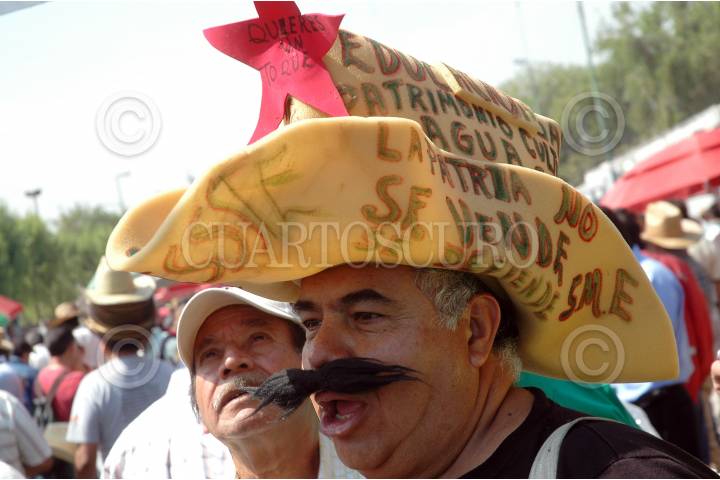 MÉXICO D.F., 07FEBRERO2008.- Un manifestante protesta a las afueras de la Cámara de Diputados en favor de la renegociación del capítulo agropecuario del TLCAN. FOTO: RODOLFO ANGULO/CUARTOSCURO.COM