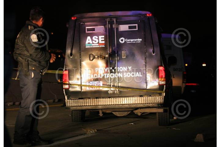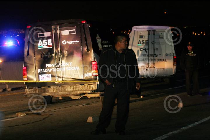 SAN JUAN TEOTIHUACAN, ESTADO DE MÉXICO, 15JULIO2010.- Un oficial de policía perdió la vida y otros cuatro más resultaron gravemente lesionados cuando un comando armado atacó un convoy de la Policía Estatal cuando circulaba en la autopista México Tulancingo en el km 23, el cual trasladaría a un reo peligroso del penal del municipio de Otumba al penal de Neza-Bordo. FOTO: LUZ ACEVEDO/CUARTOSCURO.COM