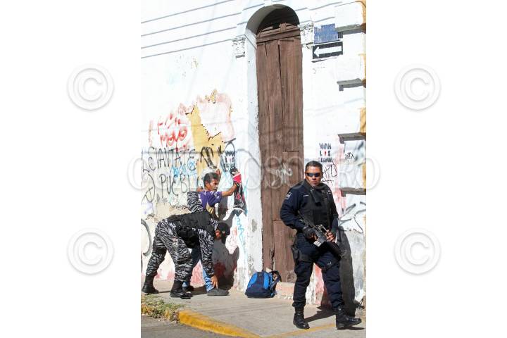 GUADALAJARA, JALISCO. 08ENERO2016.- Elementos de la Policía de Guadalajara con apoyo de la Fiscalía del Estado, la Policía Federal y personal de inspección y vigilancia, realizaron un operativo en la zona del Santuario para inhibir la venta de medicamentos sin permiso en el punto. Salvador Caro, titular de la corporación municipal, señaló que el operativo forma parte de la estrategia de reordenamiento del Centro Histórico. FOTO : FERNANDO CARRANZA GARCIA / CUARTOSCURO.COM