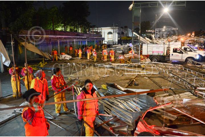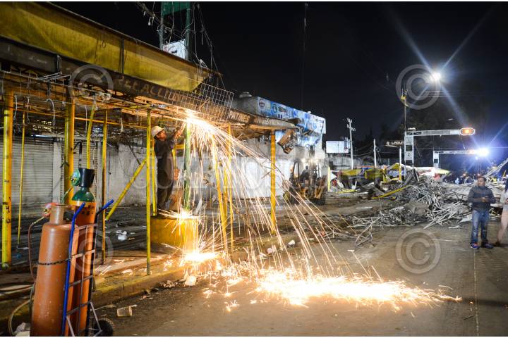 CIUDAD DE MÉXICO, 13JUNIO2017.- De la noche de este lunes hasta la madrugada del martes, el Gobierno de la Ciudad de México avanzó un tramo más en la intervención del Eje 1 Norte, como parte del proyecto integral de rehabilitación de 1.6 kilómetros que se realiza entre las avenidas Paseo de la Reforma y Anillo de Circunvalación. Tiene la finalidad de mejorar la imagen urbana, reordenar la zona comercial y recuperar espacios, así como liberar accesos a estaciones del Metro y facilitar la movilidad de los usuarios de la vía pública. La intervención, que se inició alrededor de las 22:00 horas del lunes y se prolongó hasta las 06:00 horas de este martes, abarcó tres cuadras de la acera sur, de Brasil a Aztecas, donde se desmantelaron alrededor de 700 estructuras y techumbres metálicas, así como puestos fijos y semifijos. En la acera norte, entre Peralvillo y Jesús Carranza, se retiraron aproximadamente 300. FOTO: CORTESÍA CDMX /CUARTOSCURO.COM