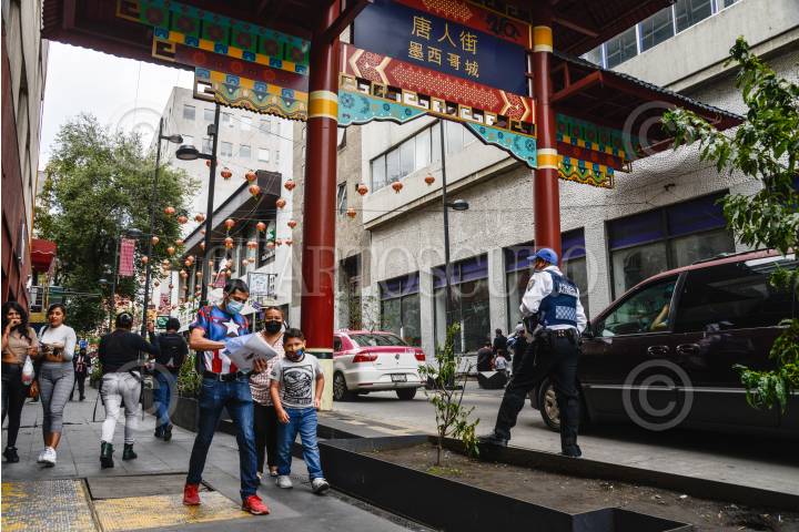 Continúa el operativo del programa de reordenamiento de comercio en el barrio chino, en donde elementos de la Secretaría de Seguridad Ciudadana (SSC) resguardan la zona para evitar que vendedores ambulantes se coloquen en dicho corredor turístico.