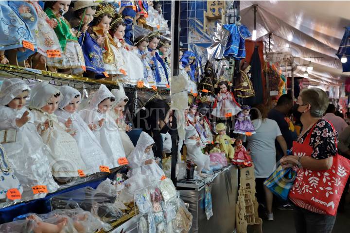 En el Mercado Hidalgo de Puebla se puede encontrar los comercios en donde se reparan y visten los Niños Dios, a unos días del Día de la Candelaria.
