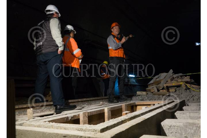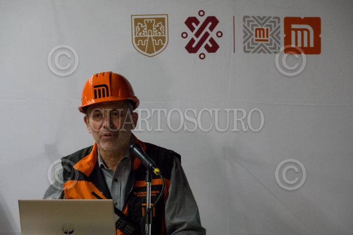 Conferencia de Guillermo Calderón Aguilera en la estación Mexicaltzingo para anunciar los trabajos de reparación de la parte subterránea de la Línea 12