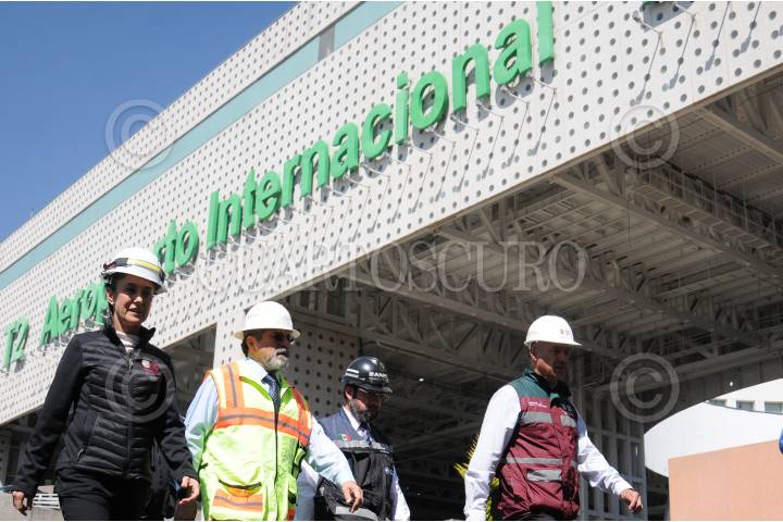 Acompañada por Jesús Esteva, secretario de obras, Claudia Sheinbaum, jefa de gobierno, recorre los trabajos de mantenimiento en la T2.