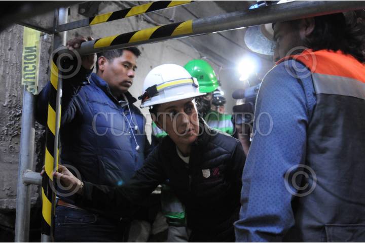 Claudia Sheinbaum, jefa de gobierno de la capital, ingresa a la zona de obras en la T2.