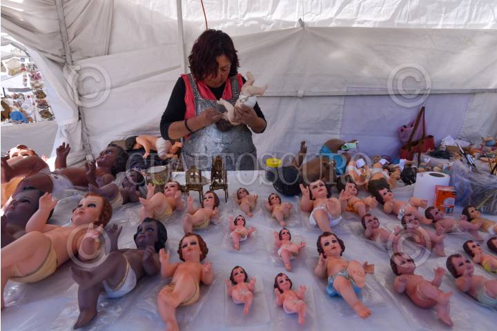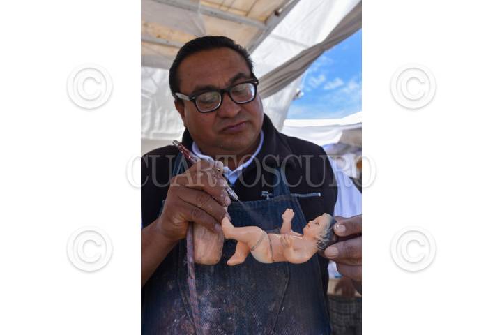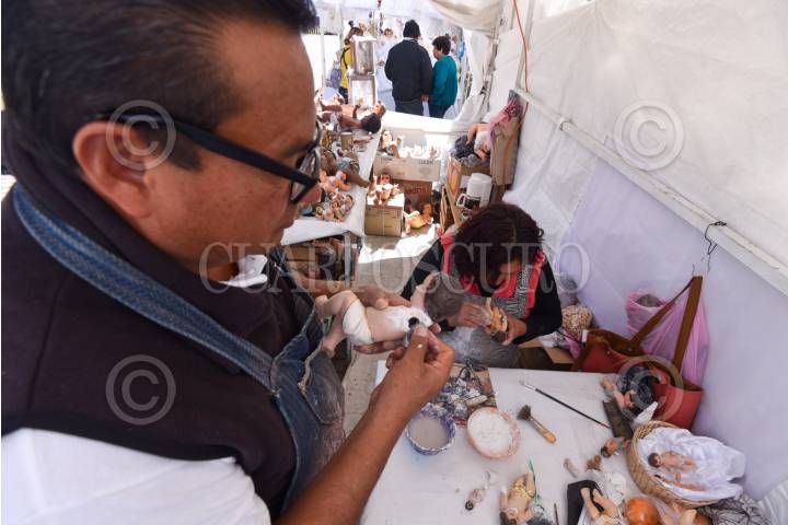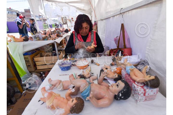 Reparadores de imágenes religiosas se encuentra trabajando en el estacionamiento del Parque Luis Donaldo Colosio, imágenes de Niños Dios de todos tamaños reparan días previos al Día de la Candelaria.
