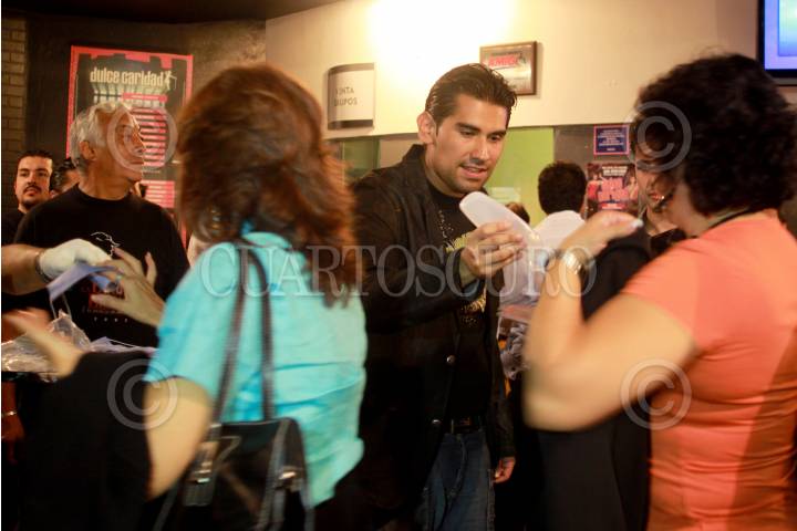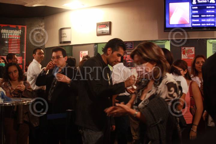 MÉXICO, D.F., 11MAYO2009.- Debido a la contingencia sanitaria en teatros personal que labora en el centro cultural telmex reparte cubrebocas y jabon a los asistentes que acudieron ala alfombra roja y festejo en el musical Dulce Caridad por la develación de placa por sus 200 representaciones FOTO:SÁSHENKA GUTIÉRREZ/CUARTOSCURO.COM