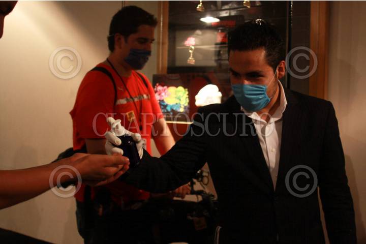 MÉXICO, D.F., 11MAYO2009.- El músico Jorge Dalessio su llegada al centro cultural Telmex donde debido a la contingencia sanitaria llego con un cubrebocas durante la alfombra roja y festejo en el musical Dulce Caridad por la develación de placa por sus 200 representaciones FOTO:SÁSHENKA GUTIÉRREZ/CUARTOSCURO.COM