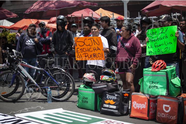 CIUDAD DE MÉXICO, 30ABRIL2025.- Trabajadores repartidores vía aplicación protestas a fuera de la Suprema Corte de Justicia de la Nación (SCJN) por la votación del impuesto de 2% por “uso de la calle”. FOTO: ANDREA MURCIA /CUARTOSCURO.COM