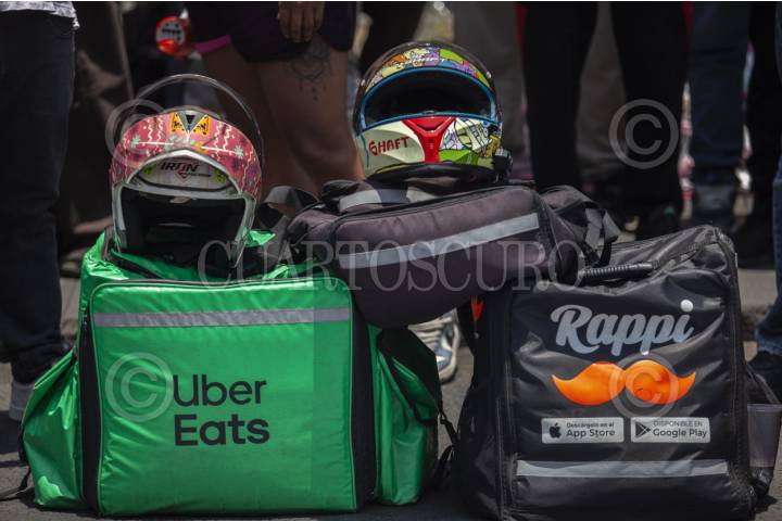 Un joven repartidor de comida por aplicación en avenida Balderas.