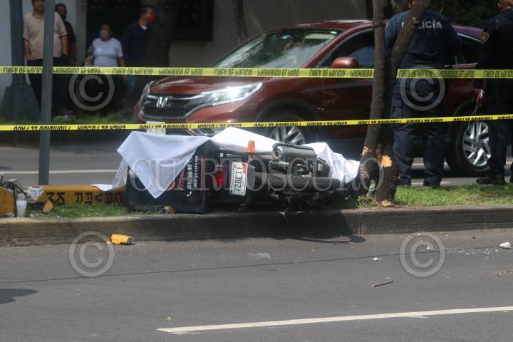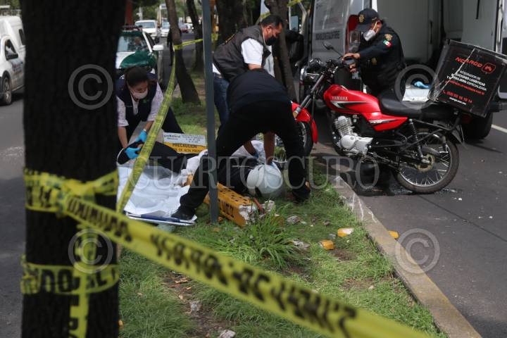 Un repartidor de comida murió al perder el control de su motocicleta e impactarse contra un poste de Pemex, en Eje 3 San Isidro, colonia Potrero del Llano.