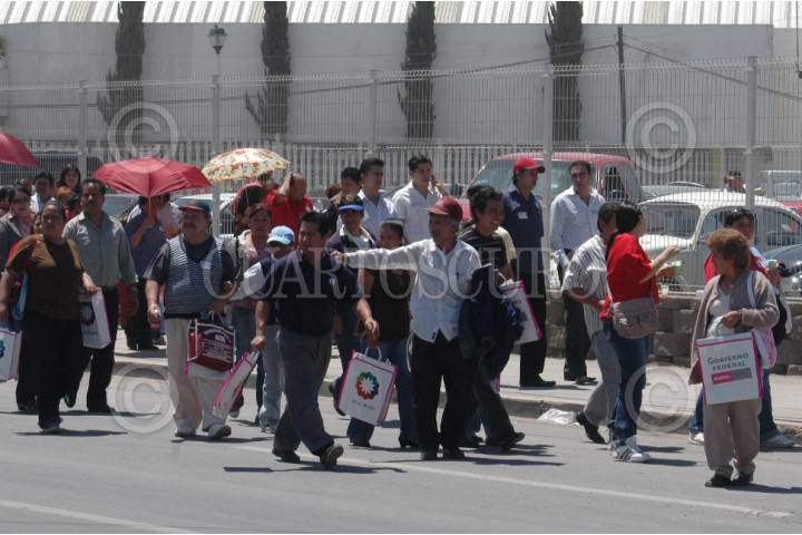 TULTITLAN, ESTADO DE MÉXICO, 24MARZO2009.- Después de un evento al que asistió Enrique Peña Nieta, se repartieron bolsas con propaganda del gobierno. FOTO: MARIO NULO/CUARTOSCURO.COM