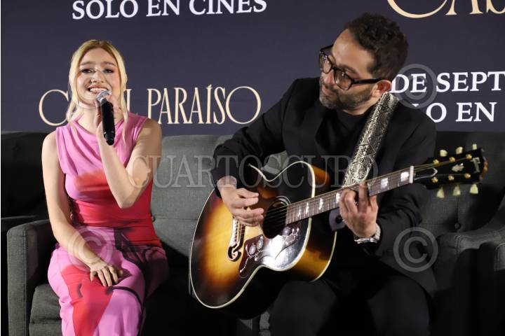 CIUDAD DE MÉXICO, 09SEPTIEMBRE2024.- Karol Sevilla interpretó el tema de la película previo al inicio de la conferencia. FOTO: DANIEL AUGUSTO/ CUARTOSCURO.COM