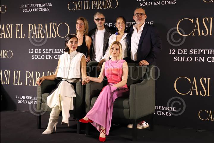 CIUDAD DE MÉXICO, 09SEPTIEMBRE2024.- Este lunes se llevó a cabo la conferencia de prensa del estreno de la película Casi el Paraíso, filme basado en la novela de Luis Spota, en la imagen parte del elenco posa al término de la conferencia. FOTO: DANIEL AUGUSTO/ CUARTOSCURO.COM
