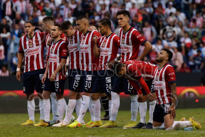 Jugadores de Chivas observan la tanda de penales en el juego ante el Puebla, en donde cayeron 5-4, perdiendo así la posibilidad de ir la liguilla.